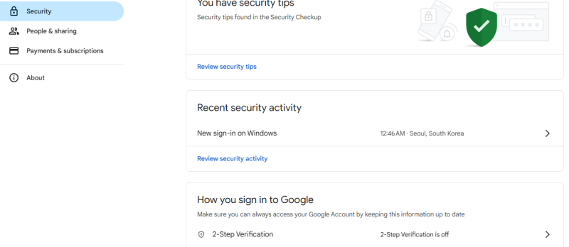 - 계정 보안 → 기기 관리에서 다른 기기들 로그아웃 시키기
