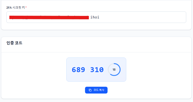 그다음 복사 한 Key 코드를 깡통스토어 2FA 화면에(https://acc-store.com/2fa-tool) 붙여넣기 합니다.
